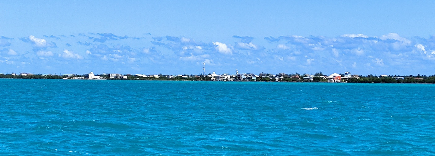 Westlich von Cay Caulker gehen wir soweit wie möglich in die Landabdeckung, es soll noch ein wenig mehr Nord West kommen. Bei etwa 1,60m Wassertiefe schmeißen wir den Anker.