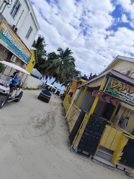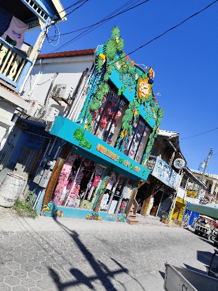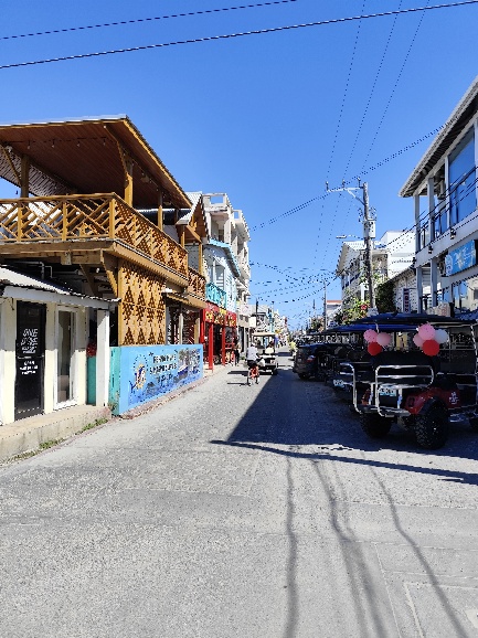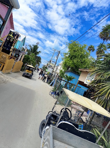 Cay Caulker ist komplett touristisch und besonders bei Rucksacktouristen beliebt. Die Straßen sind nicht befestigt und sobald ein Golfcart vorbei rauscht, staubt es gewaltig, weshalb sämtliche Auslagen in den Geschäften eine gehörige Staubschicht aufweisen. Die Restaurants sind vielfältig und die Insel scheint nett zu sein.