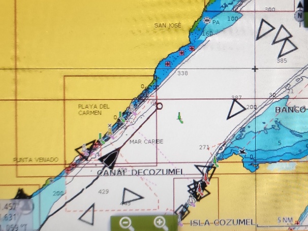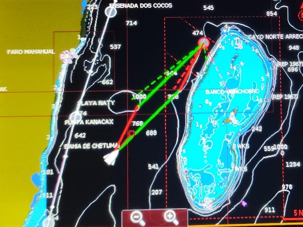 Den Westwind warten wir ab. Die Bucht ist hier hervorragend geschützt und am Samstag, den 07.02., gibt es ein Wetterfenster um nach Mexiko zu kommen. Am Freitag, den 06.02., klarieren wir aus und lichten am Samstagnachmittag den Anker. Wir haben unsere Abfahrtszeit so terminiert, dass wir am frühen Morgen im Chinchorro Atoll ankommen. Hier soll es hervorragende Schnorchel Bedingungen geben. Bei unserer Ankunft am Sonntag, den 08.02., ist der Wind deutlich stärker als vorhergesagt. Sowohl unser Windmesser als auch unser Echolot sind in der Nacht ausgefallen und so fahren wir langsam und vorsichtig in das Atoll.
