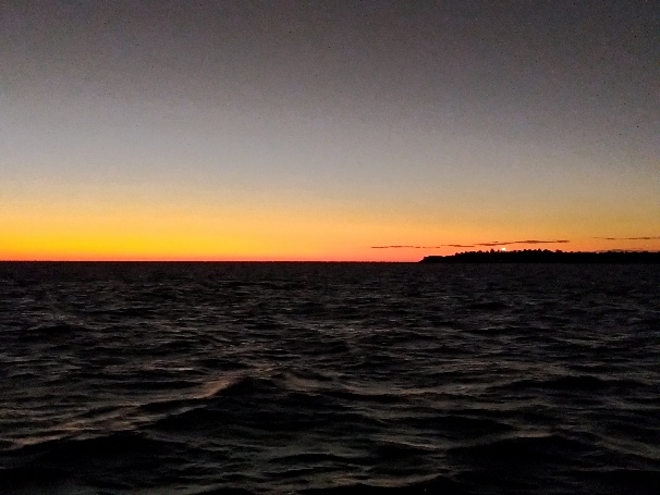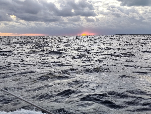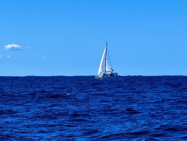 Die Freude währt nur ein paar Stunden, bis Tom einen Riss in der Genua entdeckt. Den Rest der Strecke müssen wir also Motoren. Unterwegs treffen wir Alegria, einen österreichischen Kat, den wir aus der Nanajuana kennen. Die Nacht bricht an und wir kommen in den Bereich, in dem uns der Yucatanstrom bis zu 2,5 Knoten Geschwindigkeit schenkt.