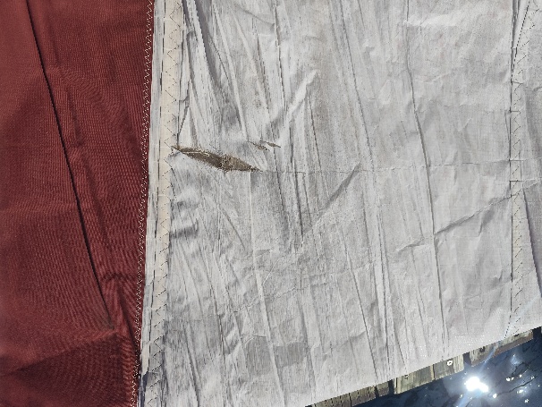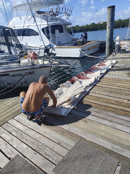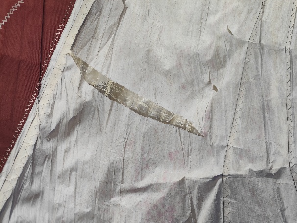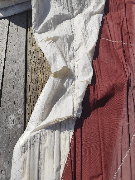 Weitere Aufgabe ist das Genua. Nachdem wir es abgeschlagen und die Beschädigung betrachtet haben, entscheiden wir uns unsere alte Genua aufzuziehen. Die schippern wir als Notersatz seit 6 Jahren in der Backskiste über die Meere. Jetzt wissen wir warum.