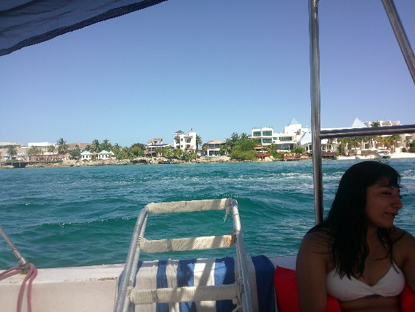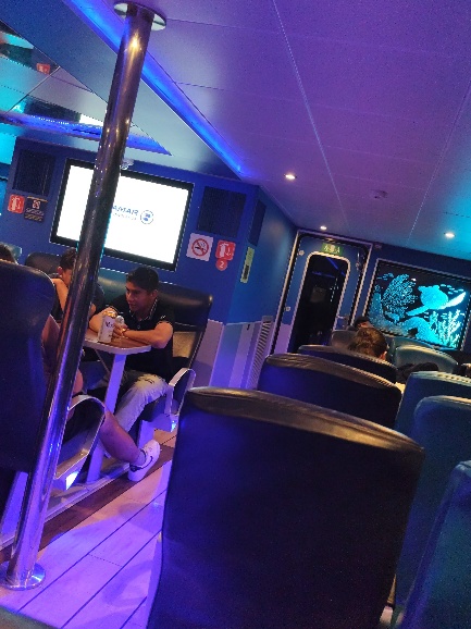 22:10h ist der Besuch mit Gepäck aus dem Terminal, nur unser Fahrer steht nicht da, wo er soll. Knapp 20 min. braucht die Verständigung. Das Terminal hat 2 Ausgänge. Wir stehen an dem einen, der Fahrer an dem anderen. 22:30h sitzen wir im Auto und der Fahrer gibt Gas. Auf die letzte Minute erreichen wir die Fähre nach Isla Mujeres.