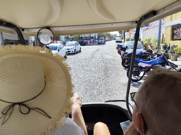 Nach einem Pooltag geht es am Samstag, den 21.02., mit dem Golfcar über die Insel, ein ausdrücklicher Wunsch unseres Besuchs, lenken inklusive. Gerne lehnen wir uns entspannt zurück und vorschriftsmäßig - inklusive Richtungsanzeige – kommen wir über die Insel.