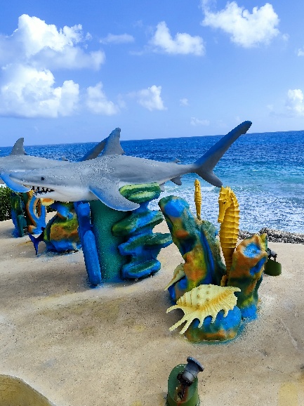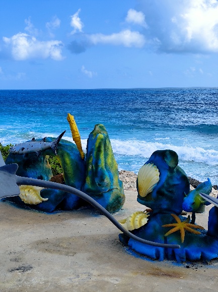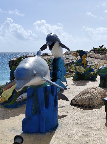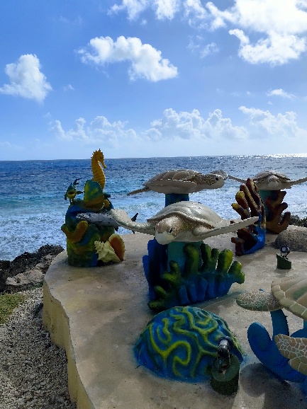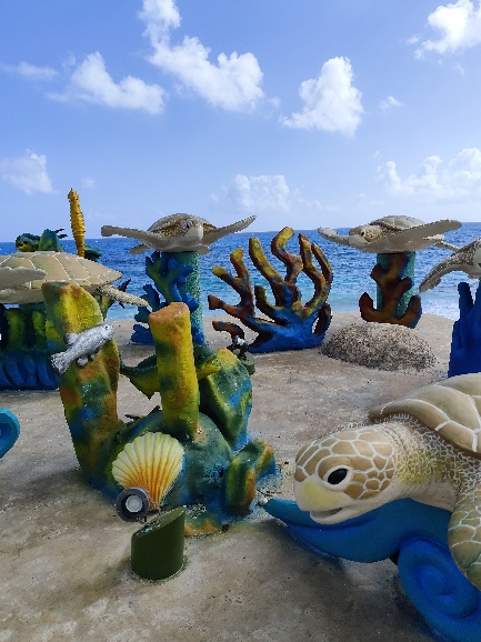 Entlang der Promenade gibt es einen Skulpturenpark, der die Faune der Insel in bunten Farben darstellt. Wirklich nett anzusehen.