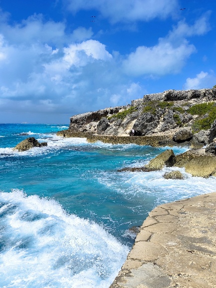 Spannend wird es nochmals vor der Insel Conzumel. Gleich 4 Kreuzfahrtschiffe kommen und entgegen und überholen sich gegenseitig. Mit etwa 500m Abstand passieren wir schließlich die Kreuzfahrer.
