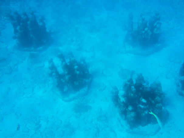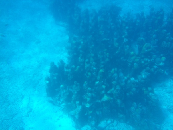 Die Tour am Leuchtturmriff ist wenig spektakulär, dauert aber fast 45 min. Die Bilder sind allesamt für die Tonne, überall waren nur Füße, einfach zu viele Leute in der Schnorchelgruppe. Der eigentlich interessante Schnorchelspot kommt nun. Das Unterwassermuseum Musa. Hier gibt es verschiedene Figuren auf etwa 8 m Wassertiefe. Auch ein alter VW Käfer wurde hier versenkt. Leider macht die neue Kamera keine besonders guten Bilder. Das nächste Mal werden wir uns etwas anderes überlegen. Trotzdem ein schöner Ausflug.