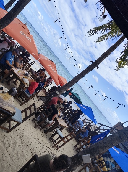 Hajo und ich machen anschließend einen Stadtrundgang durch Playa del Carmen. Nette Plätze und Strände. Viele Restaurants und Bars laden zum Verweilen ein. Besonders die Bar direkt am Strand gefällt uns gut. Zum Abendessen vereint sich unsere Reisetruppe wieder, das Alternativprogramm Hotelpool scheint auch seine Reize zu haben.