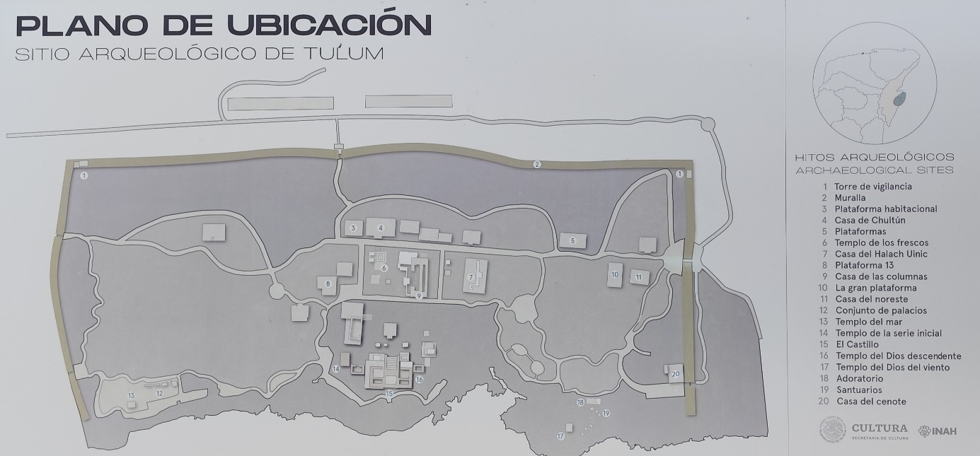 Die Lage von Tulum hinter dem Riff und auf der hohen Küste bieten Tulum guten Schutz vor Hurrikans. Andere Mayastätten entlang der Küsten fielen verschiedenen Hurrikans zum Opfer.